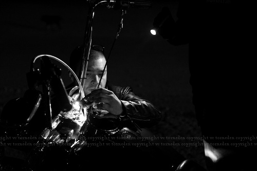 Riding motorcycles in a group, a deep meditative trance state takes over especially in the dark cool night as all the engines reach the same crescendo and break into a triplet set to the rhythm of the asphalt. The cool of perfect incoming fall rests your bones and you drift into blessed emptiness. You realize your smallness and infiniteness, you feel the forces you learned about in physics twenty years ago that hold you to the earth and slowly let go as your speed increases, you see those forces laid out blue print style before you and really understand them. Then you hear a clack clack, clack clack clack, and you remember there’s a shovelhead in the pack.
