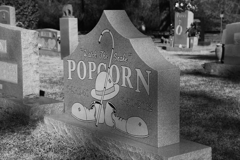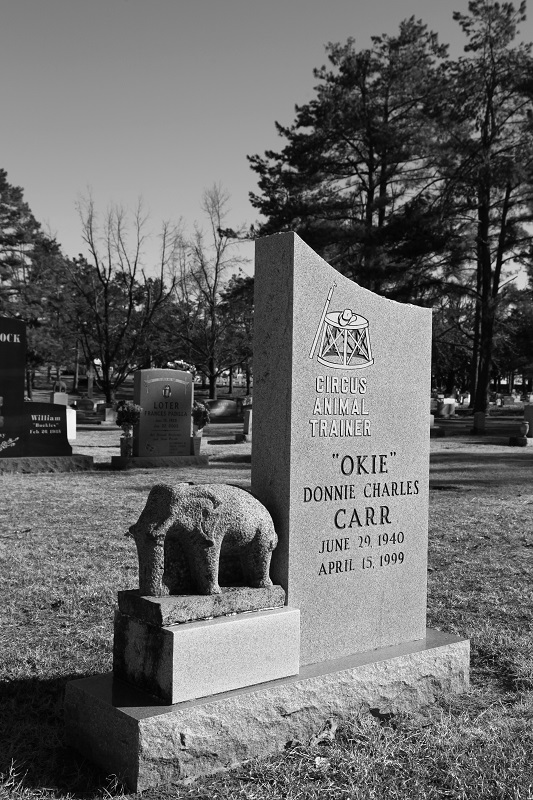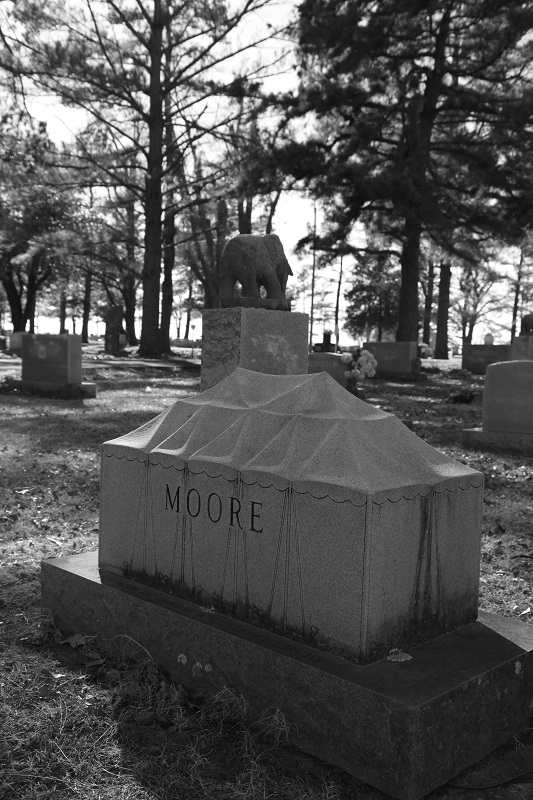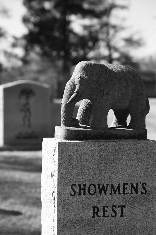 The showmen monuments were wildly intriguing with each stone bearing evidence of that particular performer’s talent, some with intricate carvings and others with images of that particular performer. Each tombstone is decorated with the big top, tigers, lions, elephants, and other circus imagery. Some are actually shaped like tents or various animals. It was easily one of the most unique cemeteries I have ever visited.