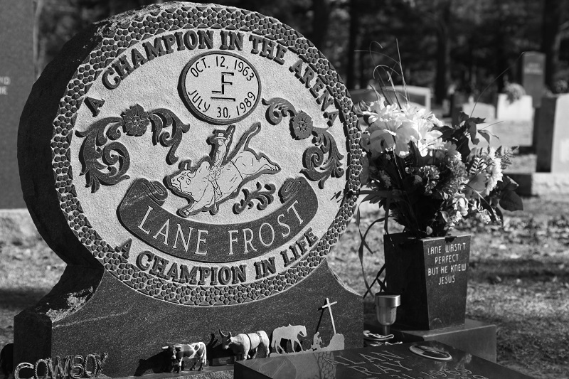If you happen to be a rodeo fan, the famous Lane Frost is also buried at Mount Olivet under a large rodeo buckle shaped marker. His mentor Freckles Brown is directly adjacent to him under a slightly less gaudy albeit equally sizeable stone.