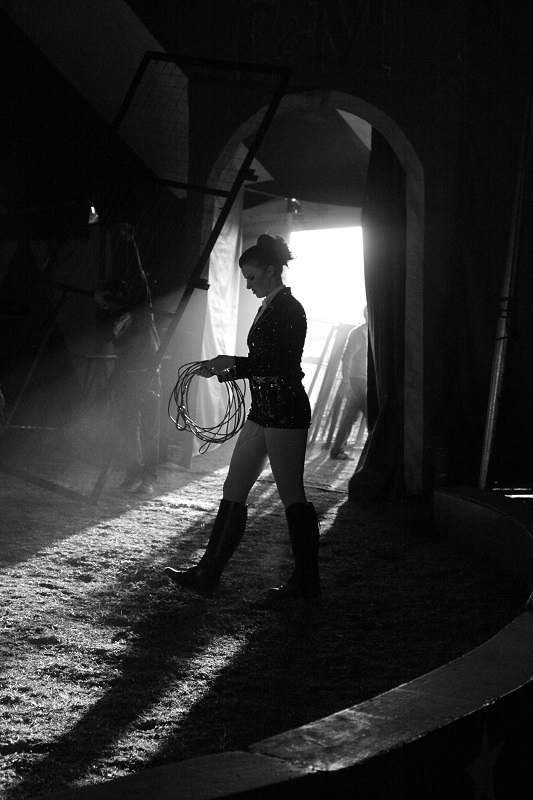 After having found in their group such a comfort zone, the second shoot was more relaxed and jovial, and I could hardly sleep the night before for excitement at seeing everyone again. By then everyone, man and beast, was settled into their routines, and when I arrived the camp lay sleepy under cold midday sunlight. Mechanical failure the night before had put all hands on deck for the tearing down of the big top, time consuming and freezing cold, so everyone rested before the evening show.