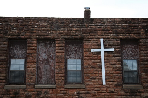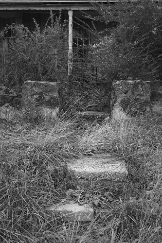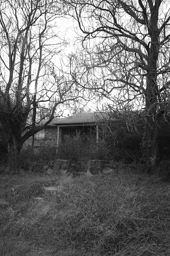 We came cautiously into what is left of Meridian, taking in the remaining buildings which stand as though they were unceremoniously abandoned in the middle of life, cut short, now stoic and silent in the high wind. Here and there a marker, a street sign where a street could no longer be seen, occasional swaths of former sidewalk and clumps of ornamental trees marking where a front yard once was before the house fell down and was eaten by the earth. I haven’t seen so many persimmon and other fruit trees since I left the South, and so out of place as the wild grows back. Your eye scans nearby for a bungalow or farmhouse circa 1920, but the lot is empty, and while occasionally you could make out a vague plot outline, there were no other signs of the past lives lived there.