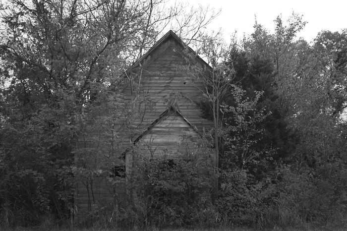 To say that the Indian Meridian Road leading to and becoming the main street of the ghost town of Meridian is worse for wear would be a vast understatement. We turned off the state highway and onto Indian Meridian, exchanging telling glances as we surveyed the red rolling hills and rough path ahead. The patchwork of age worn asphalt looked as though it might disappear into a field anytime and with no real signs of a town as far as the eye could see, for once I started questioning what I’d gotten us into. The land stretching far and wide was a beautiful kind of sad, an exceptional example of the sort of landscape that makes central Oklahoma stunning, wild and independent. But this particular stretch has a nostalgic, forgotten air pockmarked here and there with oilfield equipment. An occasional wind gush shoved us as we dodged craters, but aside from prairie wind and engine drone there was an overwhelming silence, agitated by our disturbance. The oppressive sky was thick with a wooly blue gray cloud mass, neither rainy nor rolling, but hanging and hazy, muting out all but late afternoon sun glare.