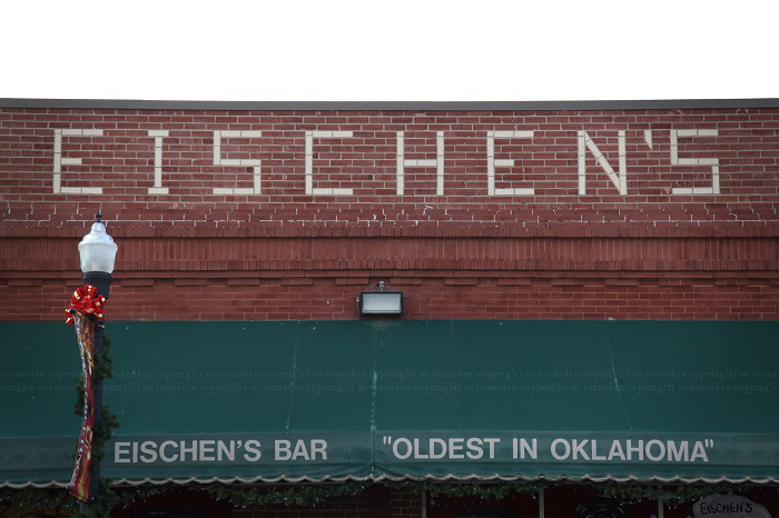 Just beyond rusty grain elevators and over the tracks, Eischen’s was easy to spot aside the main drag of archaic old west style store fronts. A popular haunt, we narrowly beat the dinner rush although cars lined the street already. Inside, the smell of fry oil hung heavy in the air, Heart played over the radio, and all but antiquated metallic garland shimmered over the bar and pool table. As thought they’d never received word that bars and restaurants divided themselves decades ago, they had all the trappings of a standard dive bar, but with the subtraction of liquor and the addition of families three generations deep sitting round the tables. Eischen’s is Oklahoma’s oldest bar, established in 1896 as a saloon and, after  prohibition, as the bar it is today. Although in the modern parlance, it is more a bar in the neighborhood grill sense, with only Oklahoma’s “near beer” as the available alcohol and the famous fried chicken taking booze’s place as the real draw for guests from all over the county.