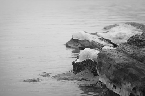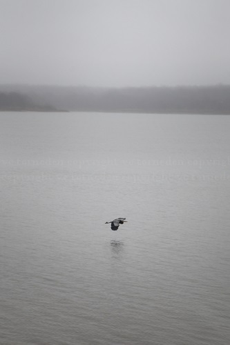 Josh continued hiking in search of deer, but I returned to the shoreline to see how far the edge reached, admiring the exposed roots and tangles of driftwood, like something from one of the gory fairytales I loved as a child. And as I neared the end of the walkable shore, a sudden booming racket and beating and up shot a flock of ducks, skyward through the trees and out over the lake, but the cold sent them reeling back to where they were feeding on the other side of the jetty. Before I made it another twenty feet up they shot again, so loud the air shook at that close range, and dozens directly overhead, yelling in that ridiculous laughing way they have to each other. Around the curve to where downed trees blocked the way and there they were, hundreds of ducks, feeding, roosting, floating, and something moved in the woods above us. Before I could properly train my lens on them they were up, all of them, like a thunder clap and echoing rumble of hundreds of wings beating in unison. I stood watching until the last were gone, photographing forgotten, all admiration and tranquility until they faded into the fog.