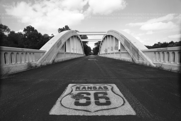 Marsh arch “rainbow curve” bridge, the original Route 66 bridge over Brush Creek, west of Baxter Springs.
