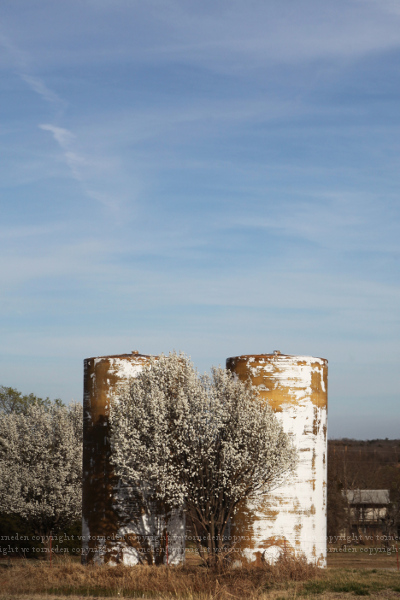 But by day we are up and gone with sunrise, riding aimlessly the backroads of America, farmhouses and pastures, barely standing bridges and crumbling barns. Even the deep sand color of winter pasture grass is changing, glowing soft golden as it comes back to life. Between miles of pastures, we passed a farmhouse being renovated, its yard pristine spring green, clover bright and nearly royal in tone, lustrous as velvet. The large sycamore in front reached out over the road, waving, dotted all over its branches with bright electric green clusters of new leaves. The pale blue sky was streaked with soft white cirrus and here on earth the land donned its Easter colors, the bold antique yellow of forsythia, dusty pale cinnabar tones of soft quince flowers, dreamy pale pink and soft cotton white fruit blossoms. Wide swathes of bright purple chickpea and emerald green clover carpeted the ground.
