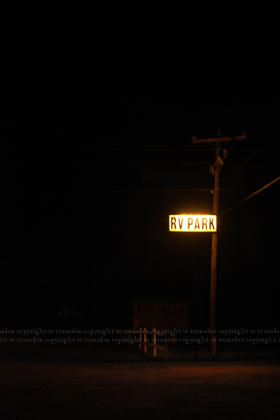 Time stops in the faint glow of a headlight pool on a darkened back highway. Thoughts separated blur together into one as the white lines become a vanishing smudge. A late night truck stop café, one truck, one car, and the eerie red glow of a neon arrow.