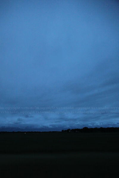 The world was painted blue. When we crested hills, ahead on the low horizon in a clearing of clouds, the last light of set sun glowed through, sickly salmon colored. But the otherwise impenetrable shroud of clouds was deep cerulean and the landscape was filtered through that same blue light.